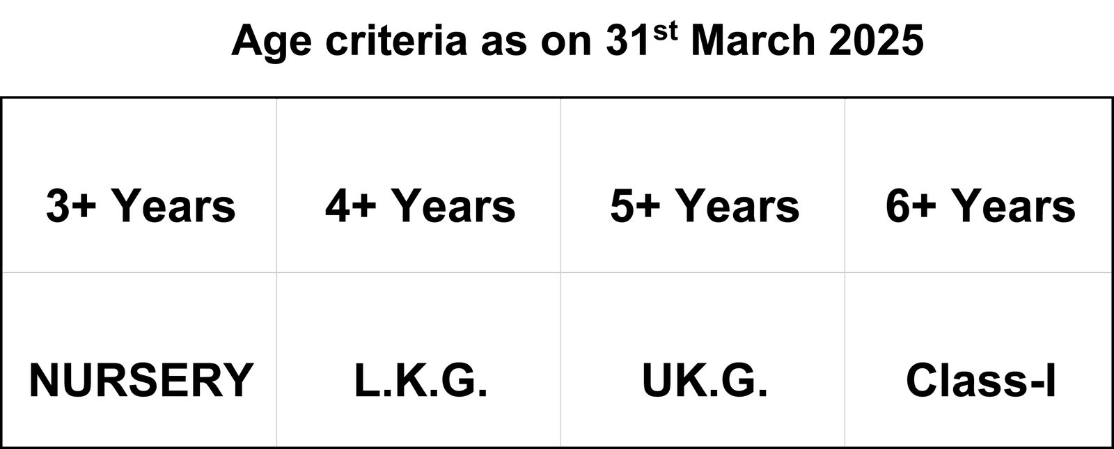 1.6 Age for admission to class Nursery is 4 years in the academic session in which admission is taken. Age should be properly specified on the forms.